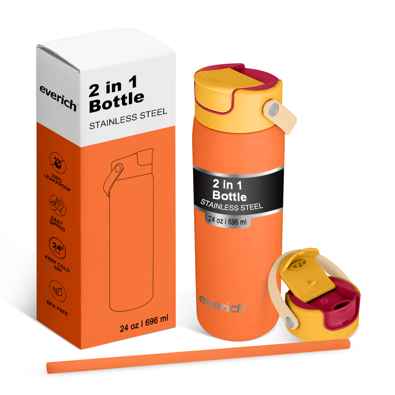Botella de agua deportiva de acero inoxidable de 32oz con aislamiento de frasco de vacío de succión libre con logotipo personalizado con asa y pajita