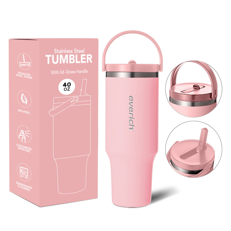 Tazza per auto a tenuta stagna stampata con Logo personalizzato 40oz in acciaio inossidabile isolante da viaggio con manico e paglia